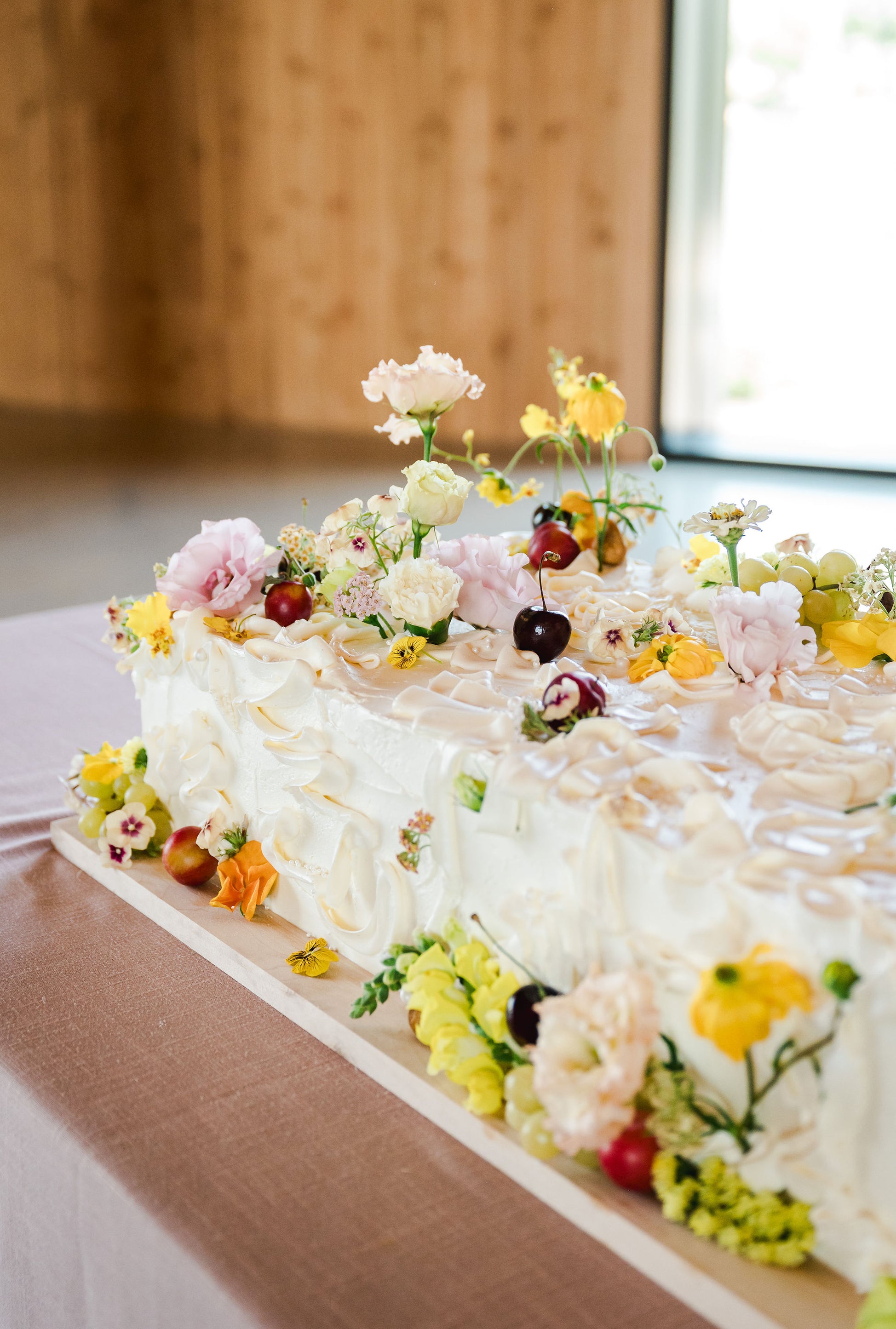 - The wedding slab cake made by Jenna of Jenna Rae Cakes was a statement piece that we're still thinking about. She saw our vision and ran with it, making an absolute masterpiece of a dessert. Jenna mentioned that she had wanted to create something along these lines for quite a while, so the timing worked out perfectly.