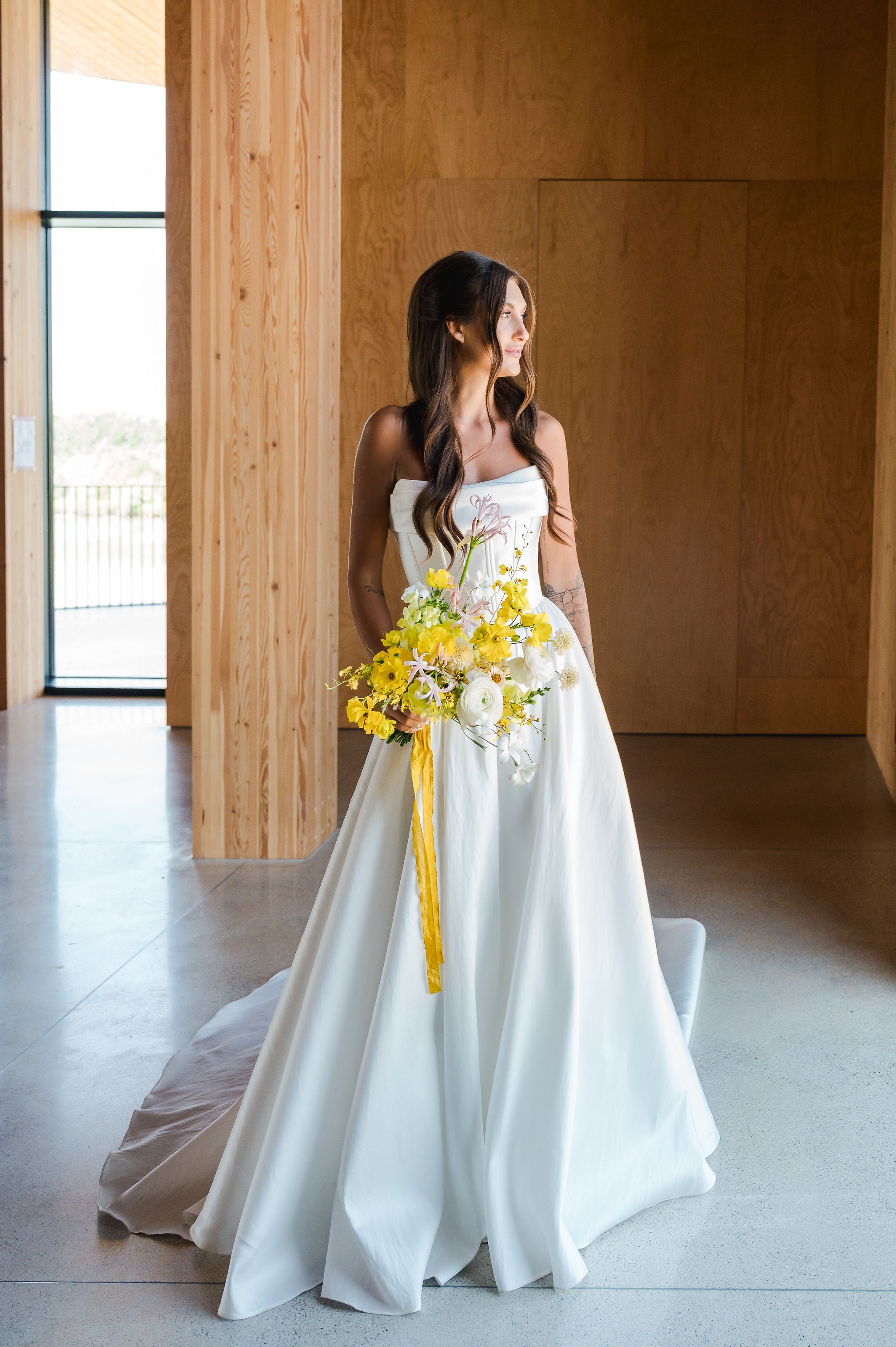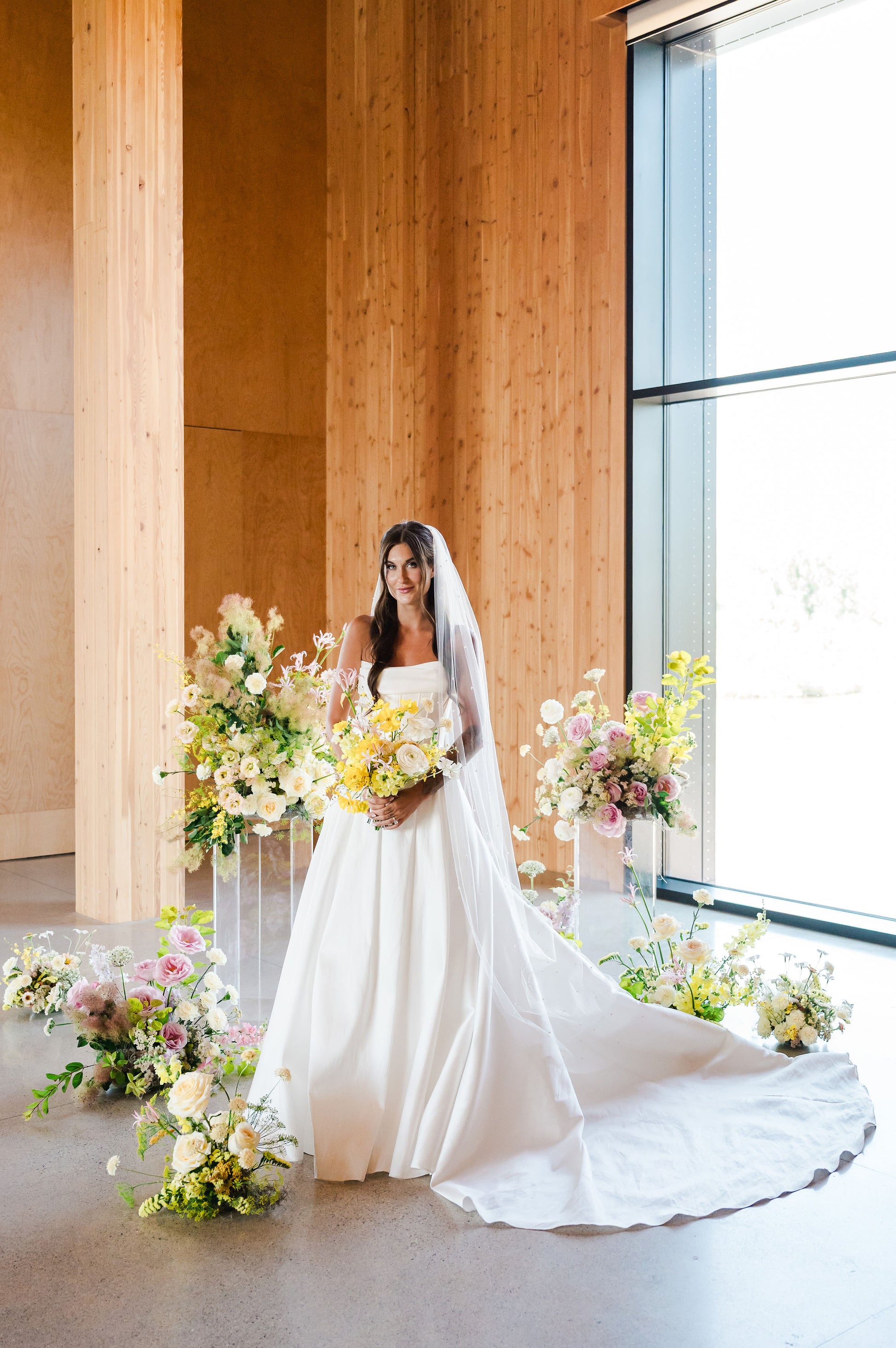 The building itself is quite modern, and it feels sleek and minimalist but not cold or uninviting. Most walls are a natural, warm wood, and the floors are an understated concrete, perfect as a backdrop for weddings and events.